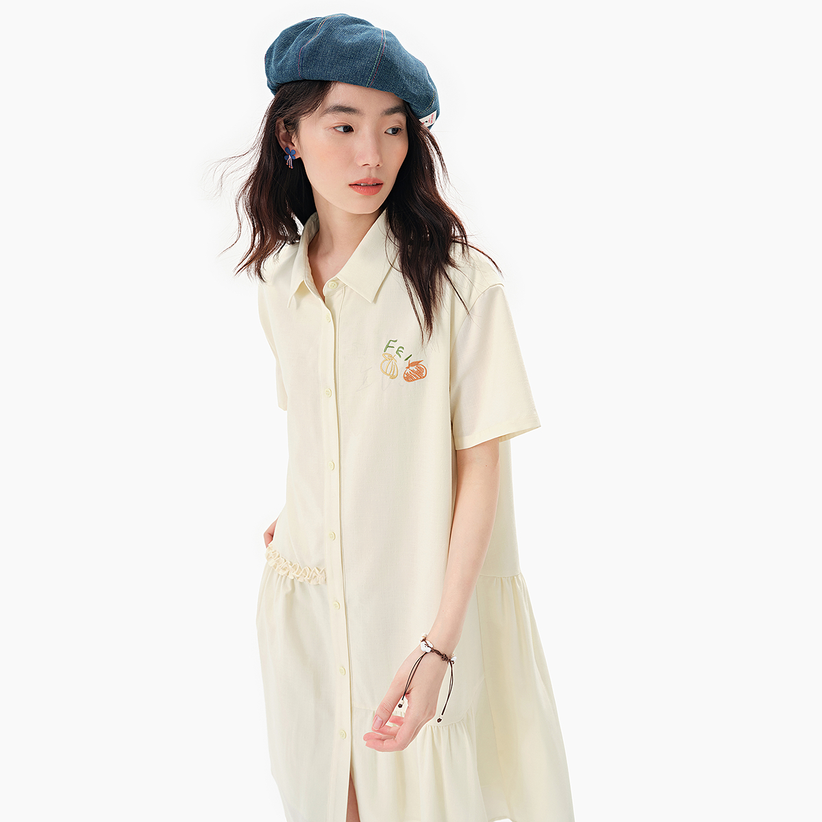 显瘦女裙 宽松短袖 飞鸟和新酒荷叶边衬衫 连衣裙2025淡人穿搭中长款