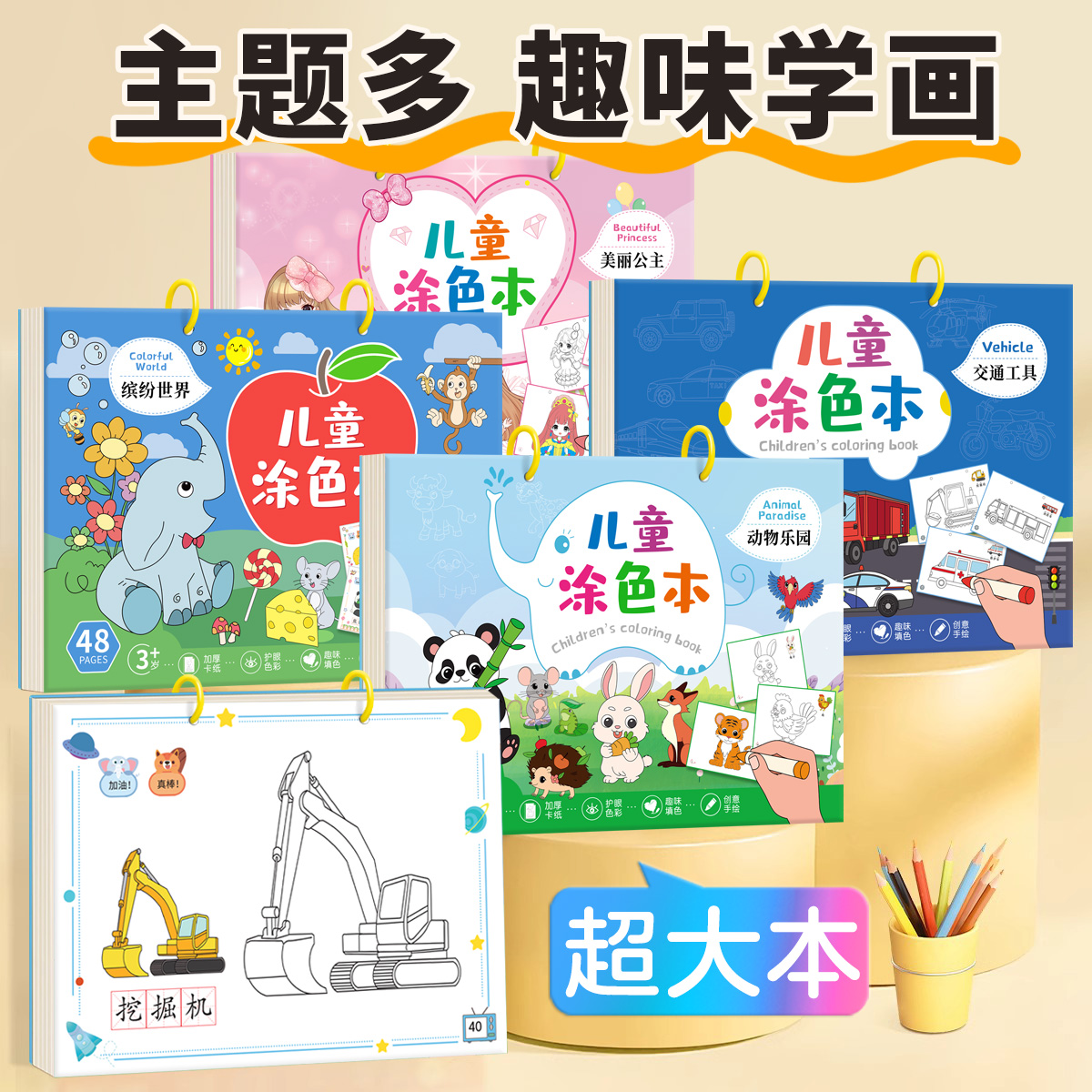 儿童涂色本幼儿园专用画画本涂鸦本3到6岁宝宝绘画本涂色书描红本