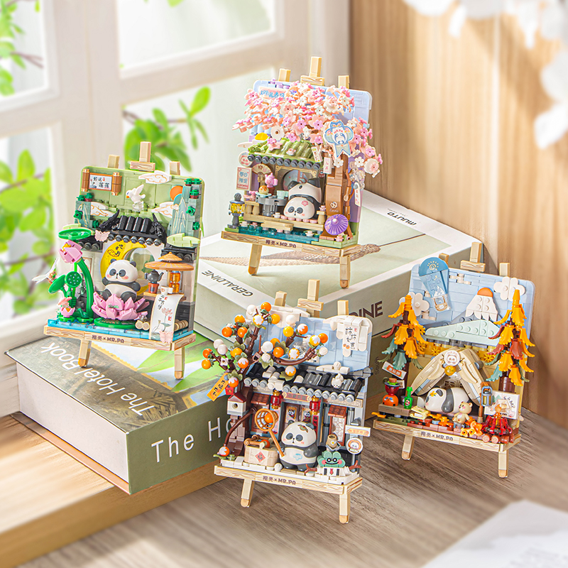 俐智Loz积木耙老师立体画熊猫樱满春日益智玩具拼装 好运莲莲礼物
