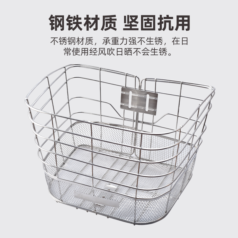 自行车车筐不锈钢车篮子置物筐防锈加粗加厚通用前置单车篓子配件