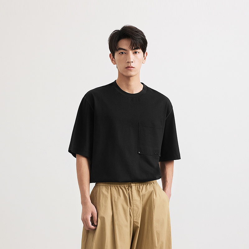 亨利领重磅长袖 新款 衫 阔版 太平鸟男装 假两件宽松打底衫 T恤25秋季