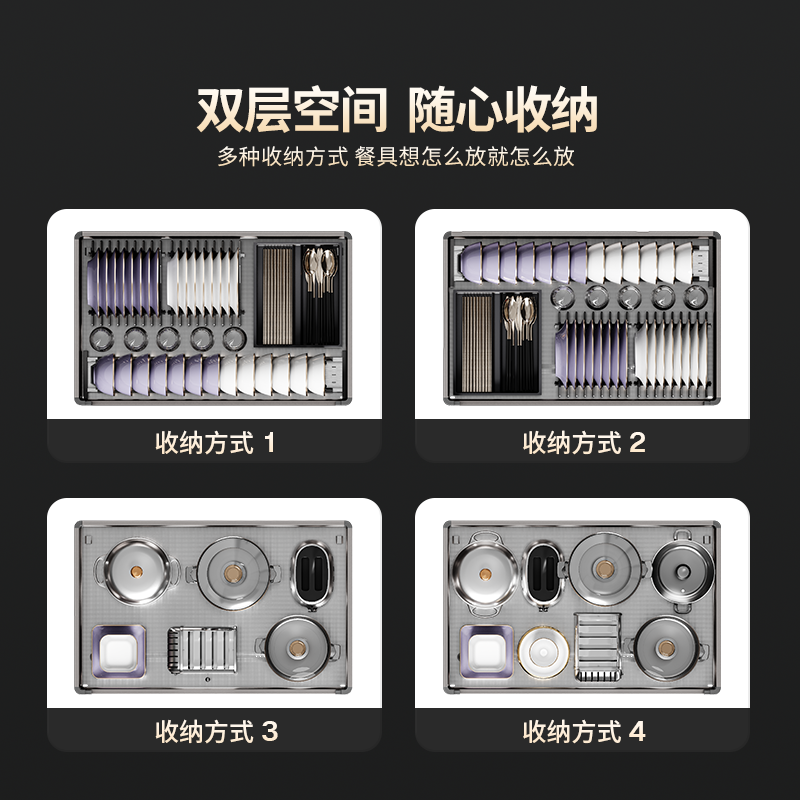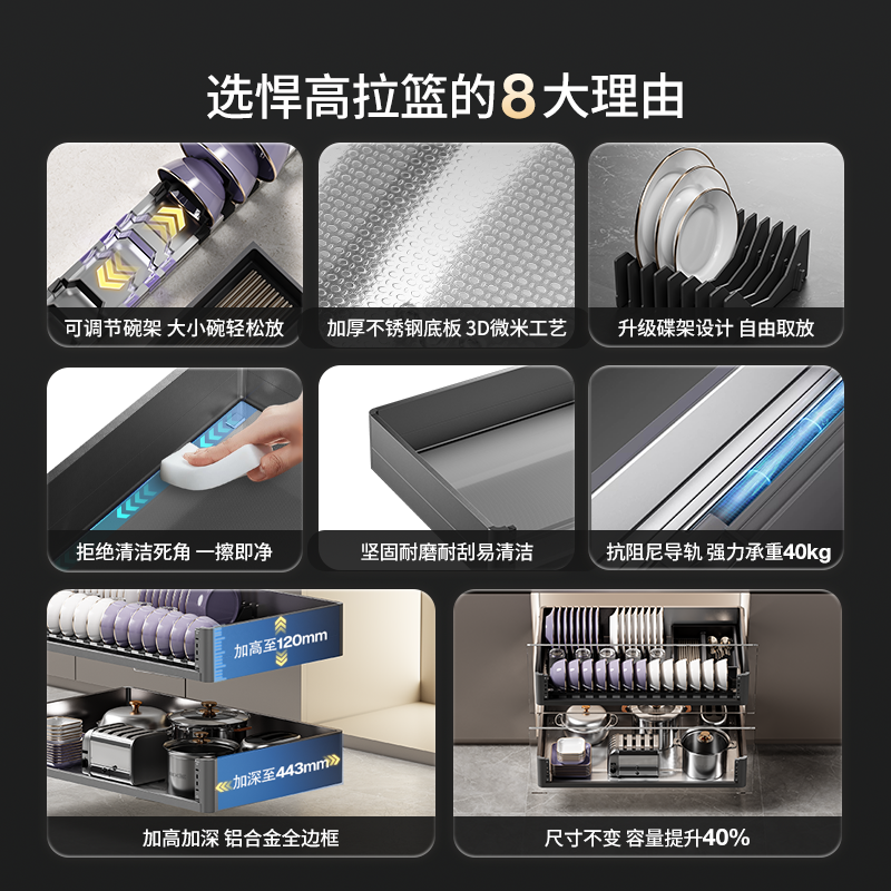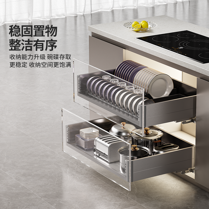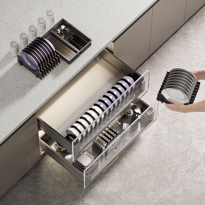 悍高厨房橱柜拉篮L4.0系列抽屉式 304不锈钢碗碟拉篮双层置物碗篮