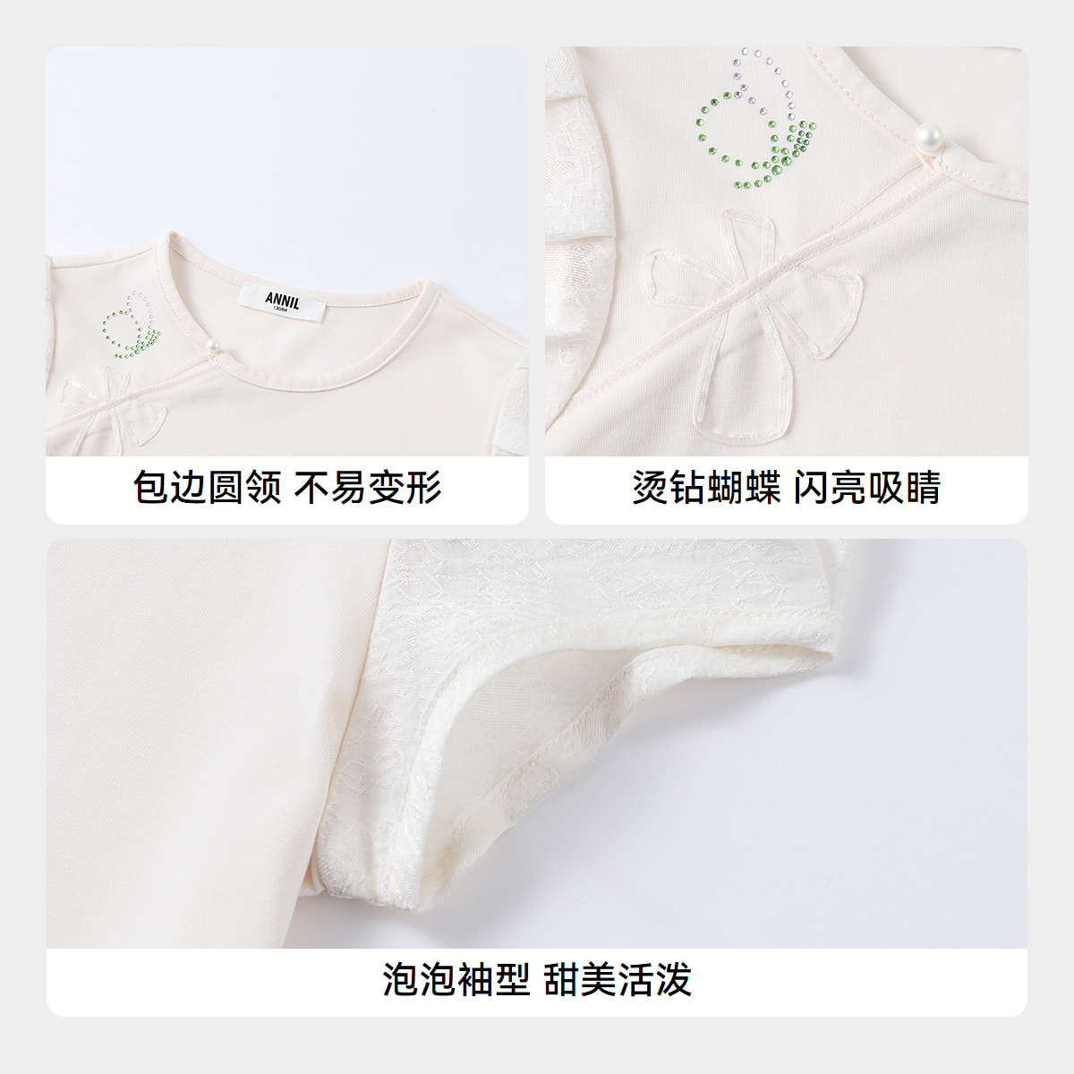记忆棉凉感T 新中式 安奈儿童装 T恤2025夏新款 弹力 女童圆领短袖
