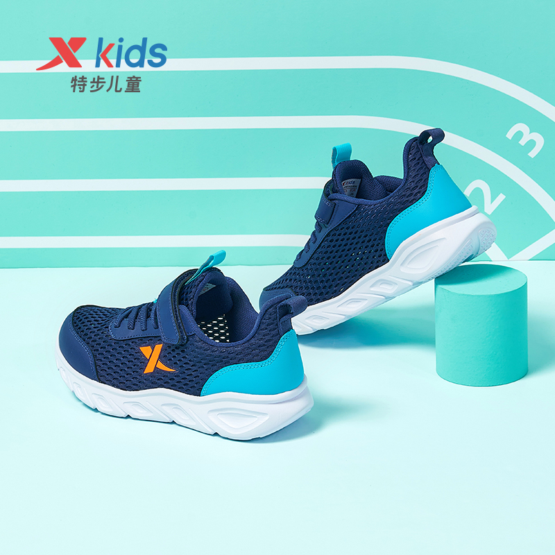 儿童魔术贴跑步鞋 女童鞋 夏季 男童大网孔透气运动鞋 子 新款 特步童鞋