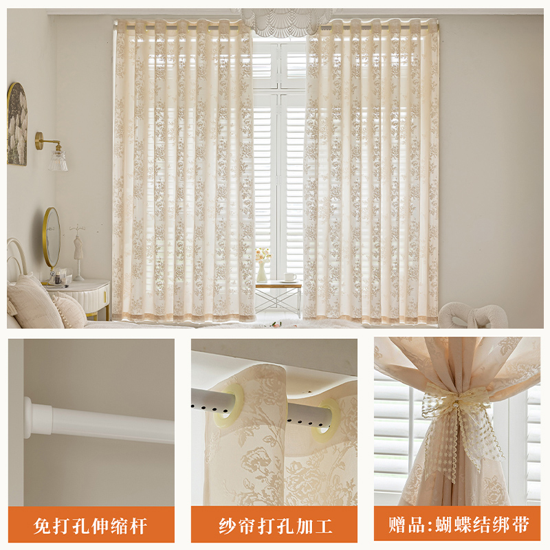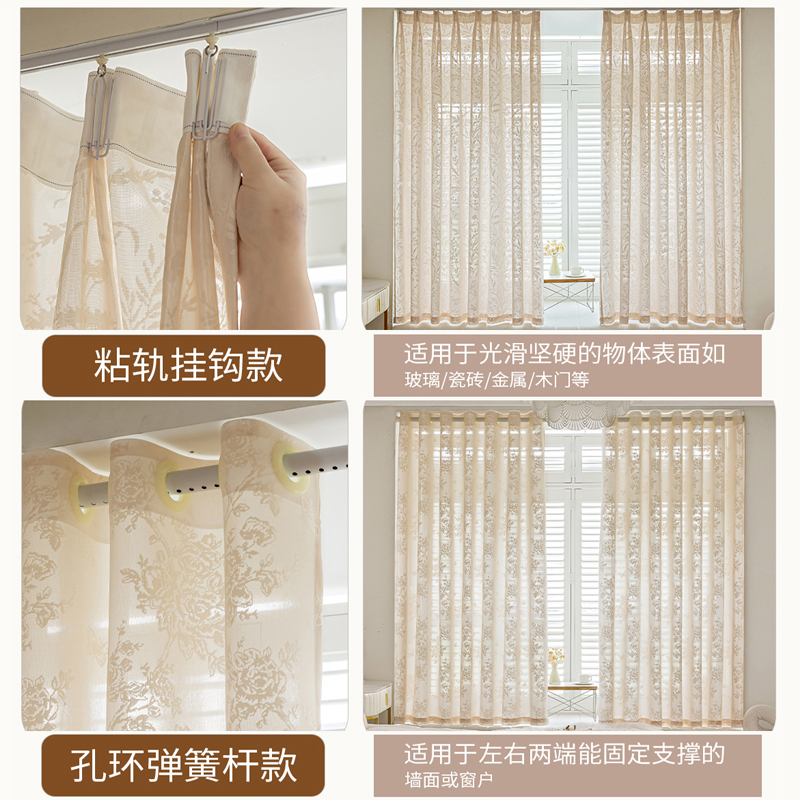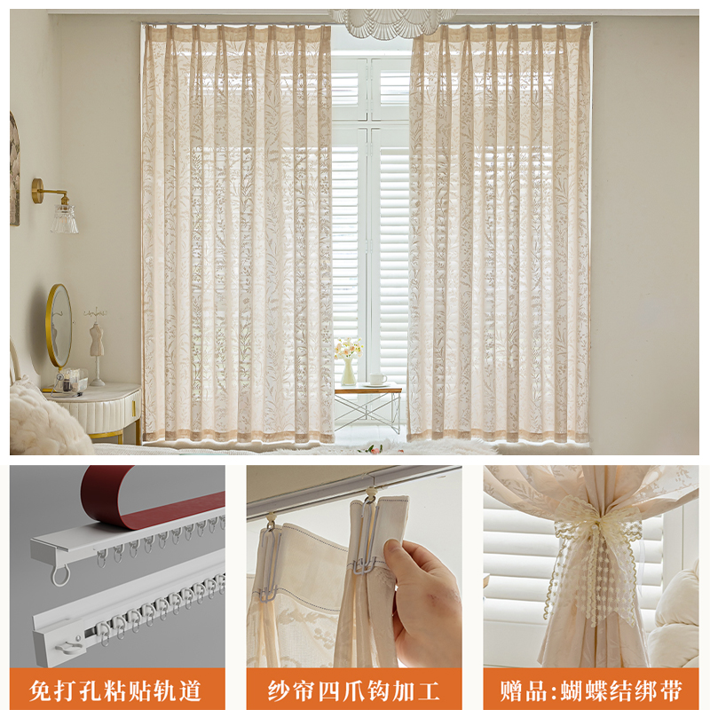 2025新款 法式 窗帘纱帘透光不透人客厅阳台飘窗防晒免打孔安装
