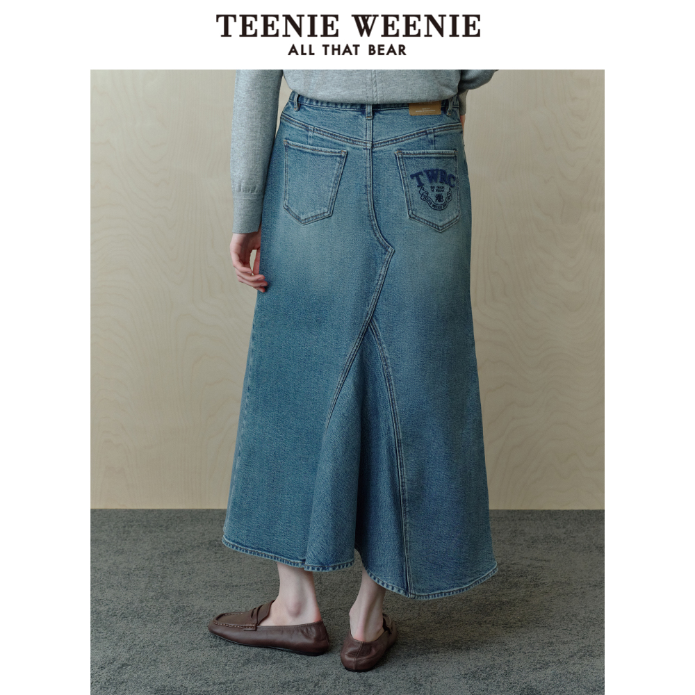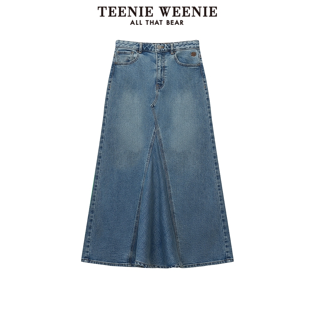 复古怀旧蓝高腰A字牛仔半身裙女2025秋季 设计感小众拼接洋气长裙