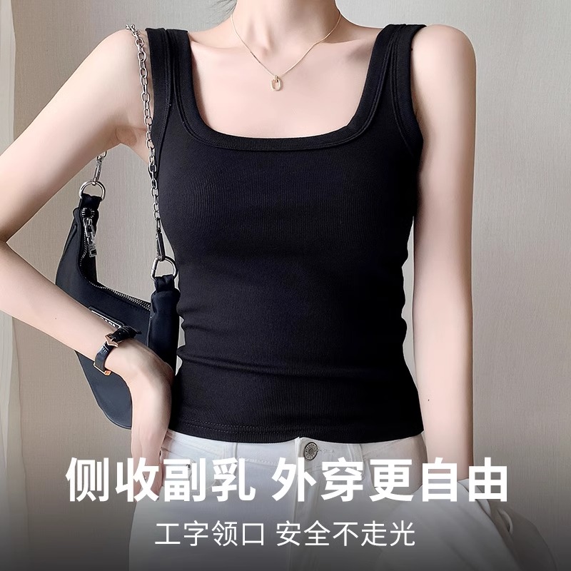 打底螺纹上衣 外穿内搭无袖 黑色宽肩遮副乳吊带背心女2025新款 夏季