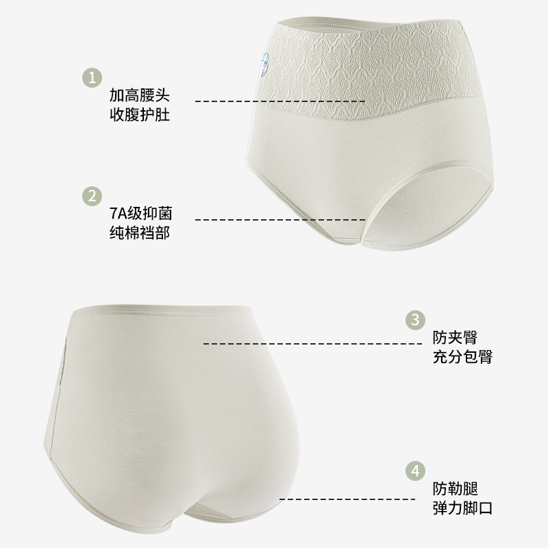 短裤 三角裤 女士轻压收腹7A抗菌裆贴肤透气新款 ubras纯棉高腰内裤