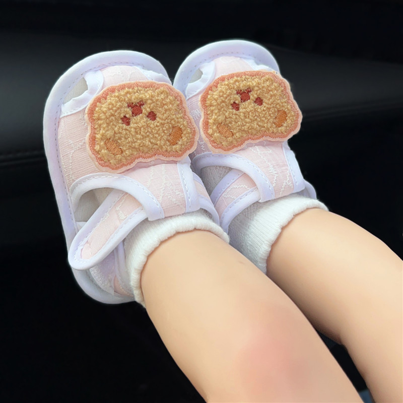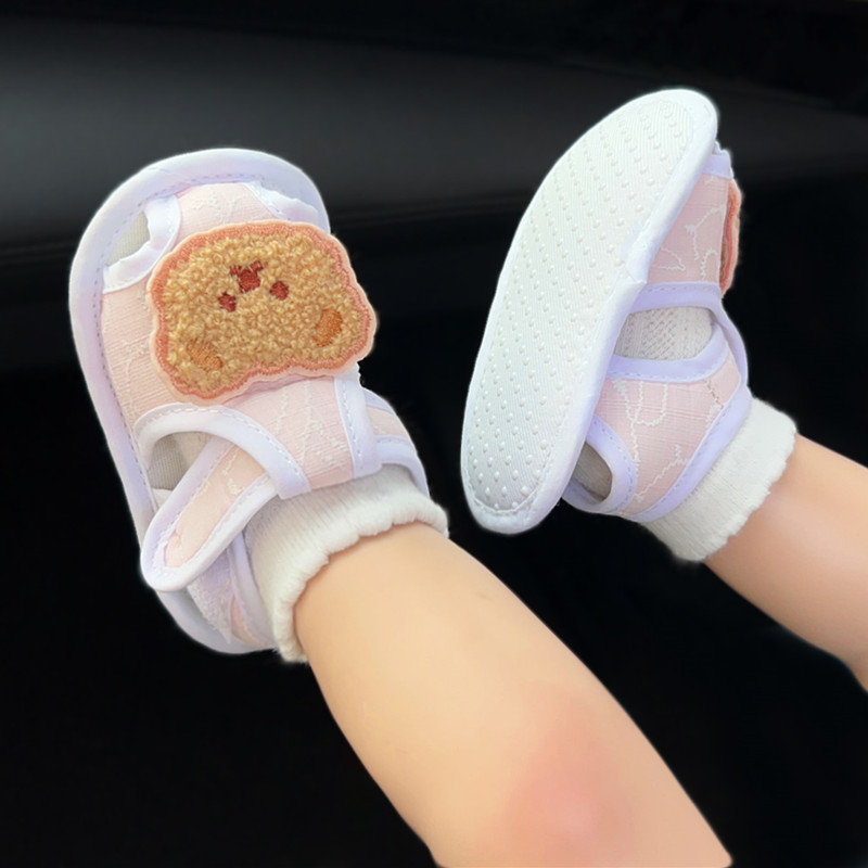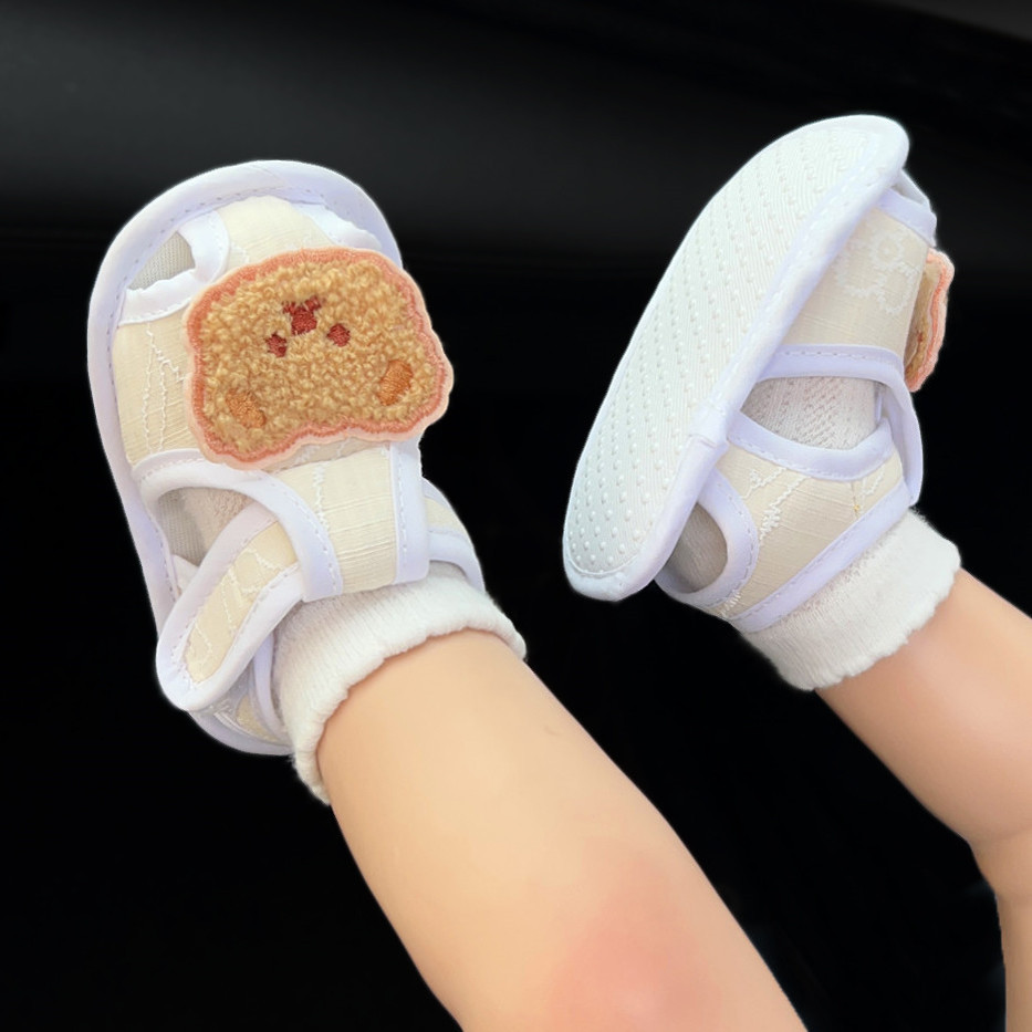 1岁新生婴儿布鞋 夏季 小熊不掉软底步前鞋 子2 宝宝护脚学步凉鞋