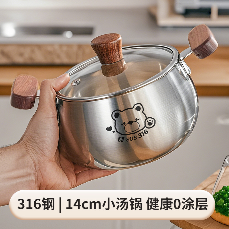 316不锈钢小汤锅家用迷你炖锅加厚煮锅燃气电磁炉用宝宝辅食小锅