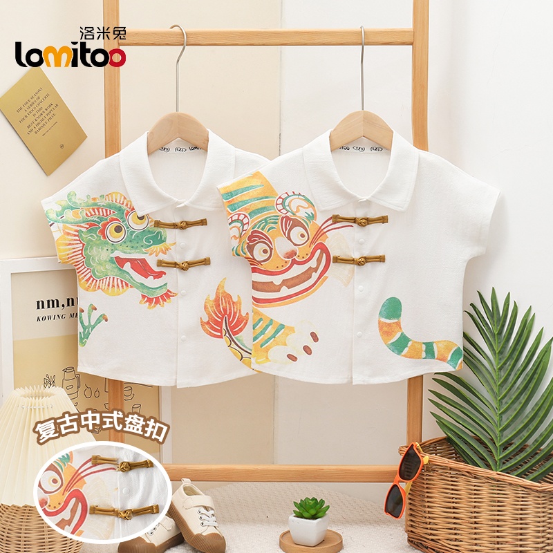 女童宝宝老虎新中式 纯棉2025新款 汉服 衬衫 男童国风上衣儿童短袖