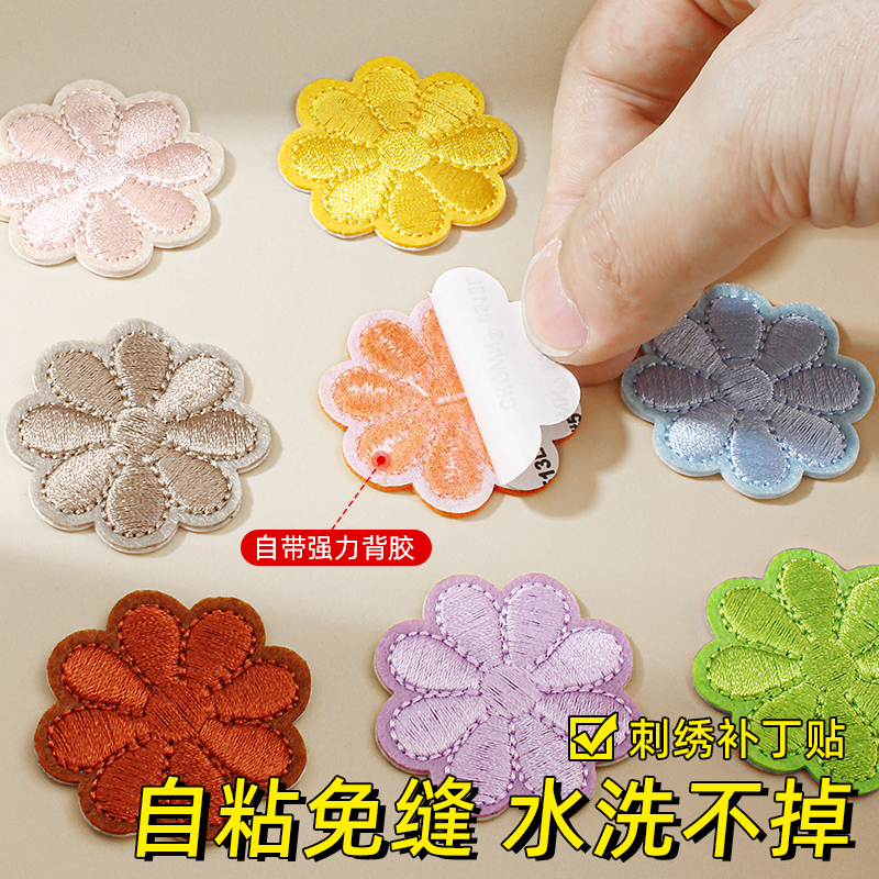 衣服布贴自粘免缝高端隐形修补裤 子T恤可水洗花朵刺绣可缝补丁贴