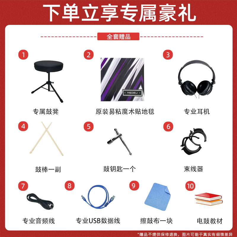 美得理魔鲨MZ726 练习架子鼓成人演出 MZ729网面电子鼓家用款