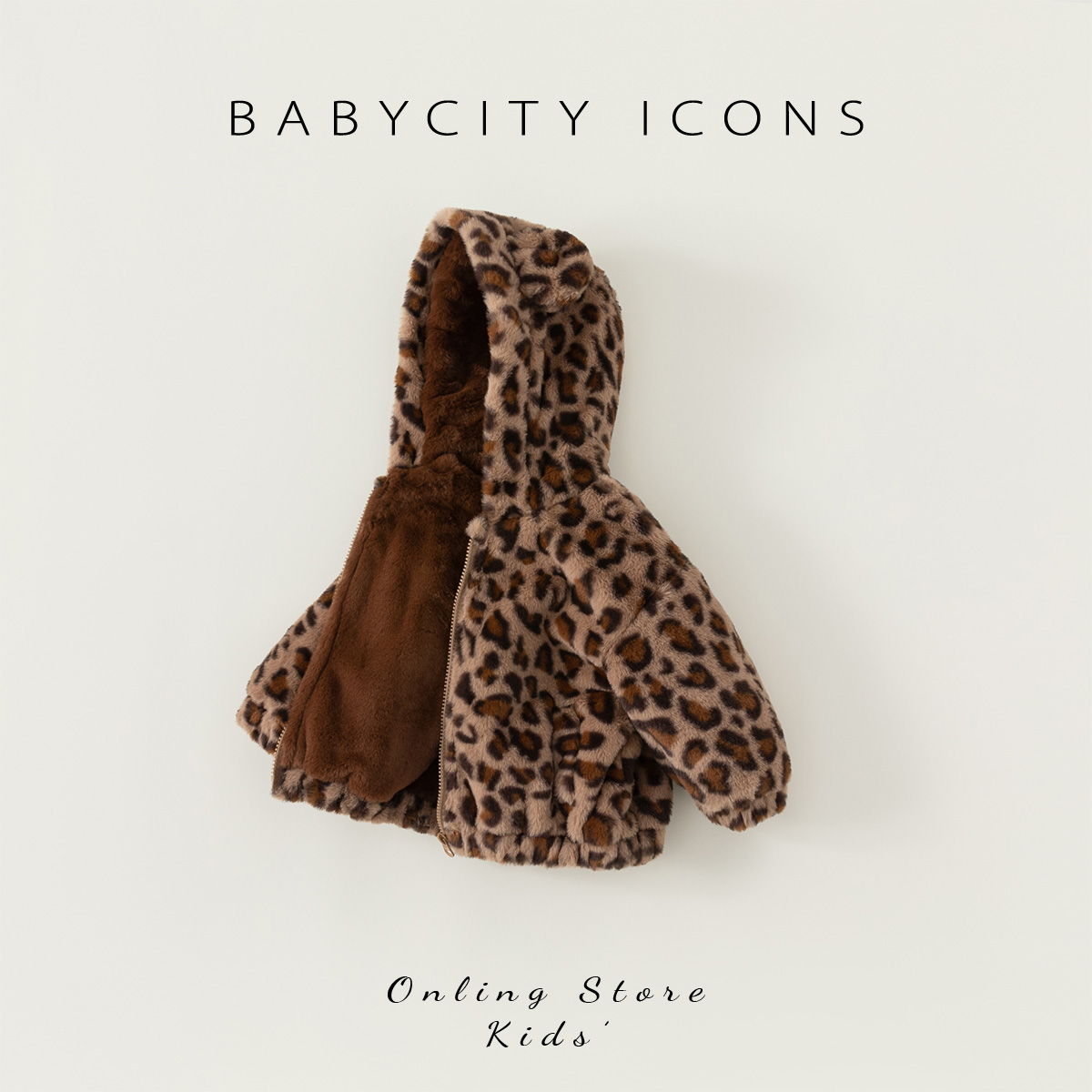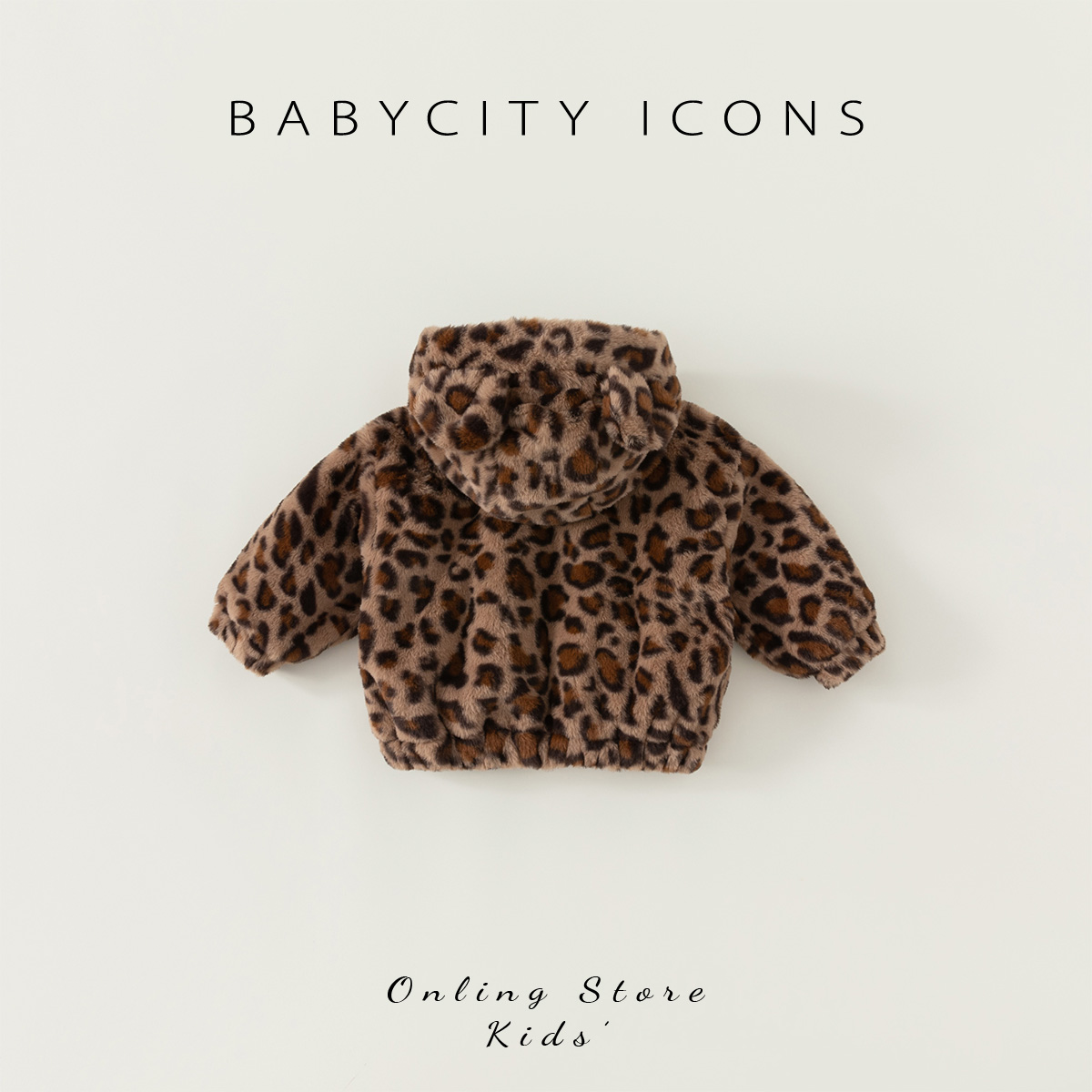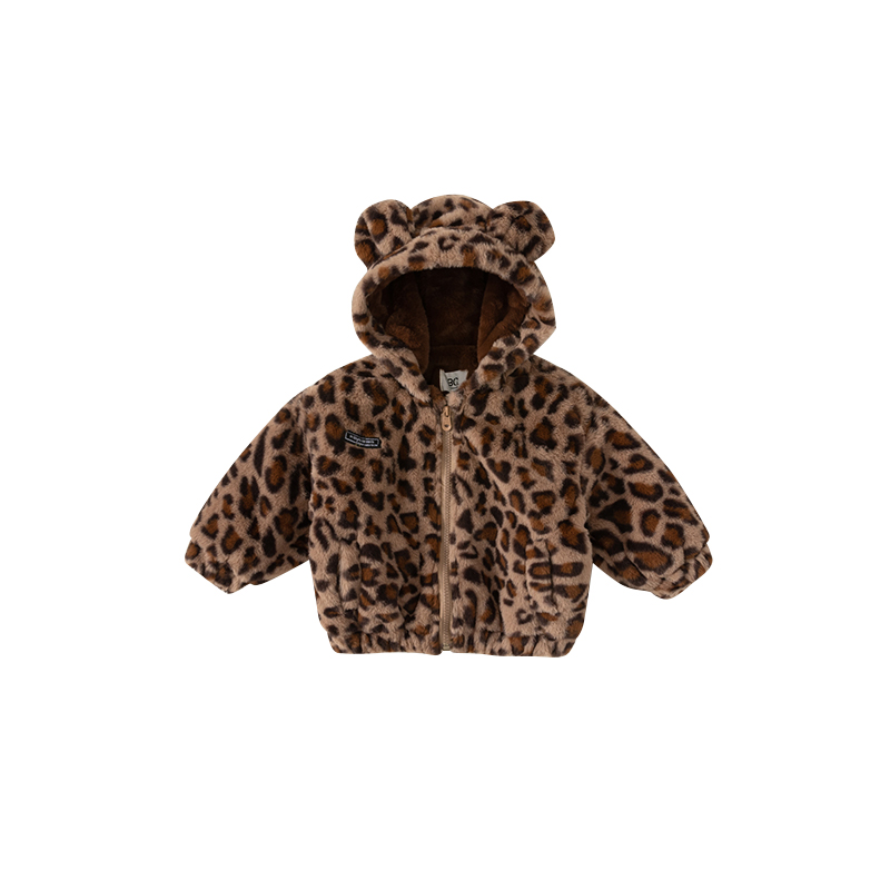 宝宝冬装 外套男童连帽保暖毛毛衣女童加绒上衣儿童洋气豹纹衣服潮