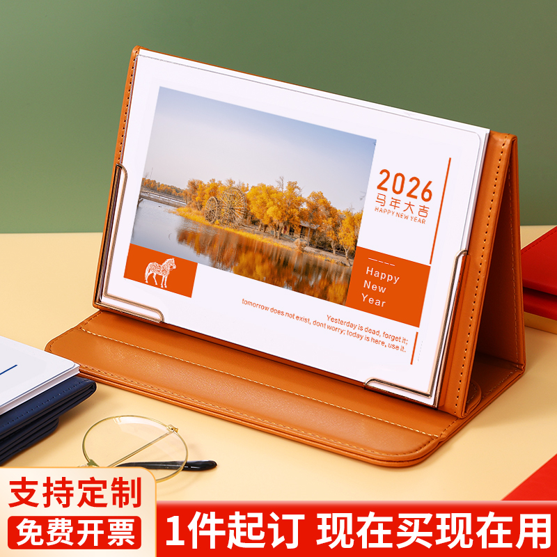 2026年高档皮台历新款 日历商务办公室桌面摆件创意月历企业定制