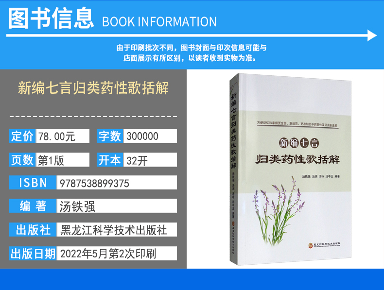 社9787538899375 黑龙江科学技术出版 新编七言归类药性歌括解 汤铁强等编著