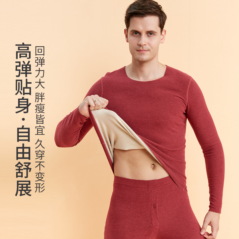 羊绒保暖内衣男加绒加厚无痕德绒自发热秋衣套装 内穿单件上衣 冬季
