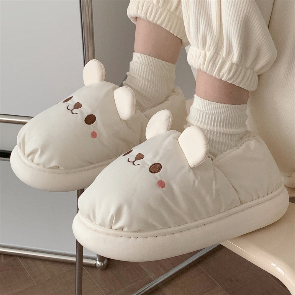 男 可爱卡通家居卧室防滑软厚底面包月子鞋 保暖全包跟棉拖鞋 女冬季