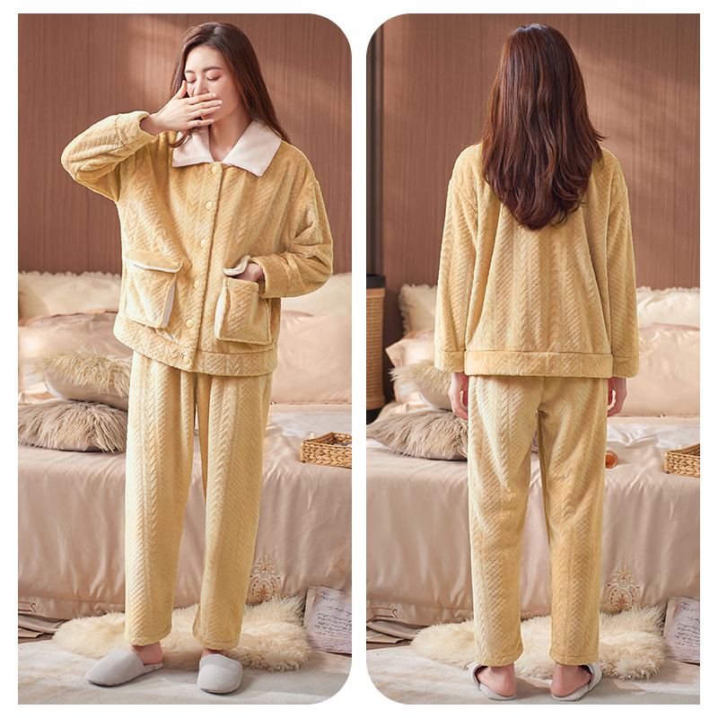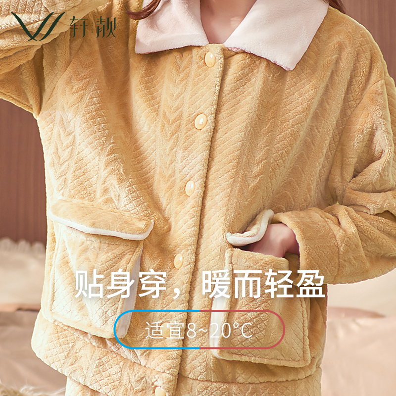 套装 轩靓海岛绒睡衣女士春秋季 大码 保暖珊瑚绒家居服冬款 加绒长袖