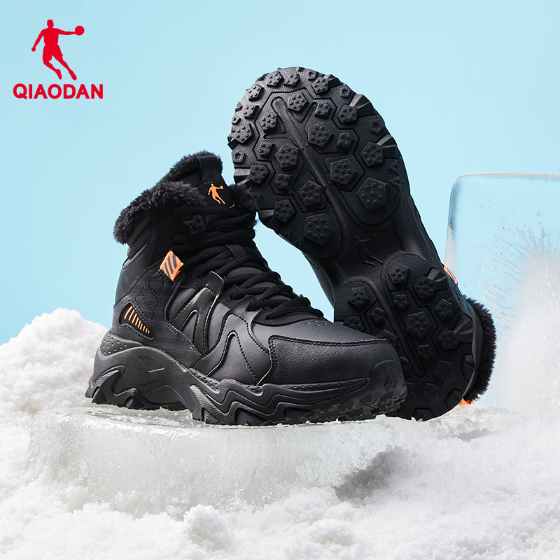 子黑色跑步鞋 男革面保暖防水大棉减震鞋 加绒运动鞋 乔丹高帮棉鞋