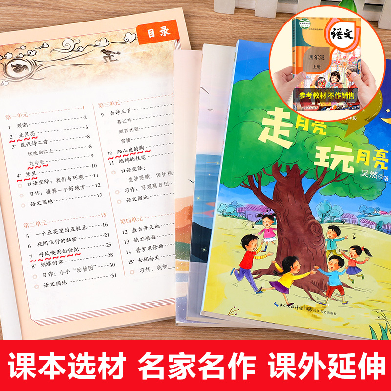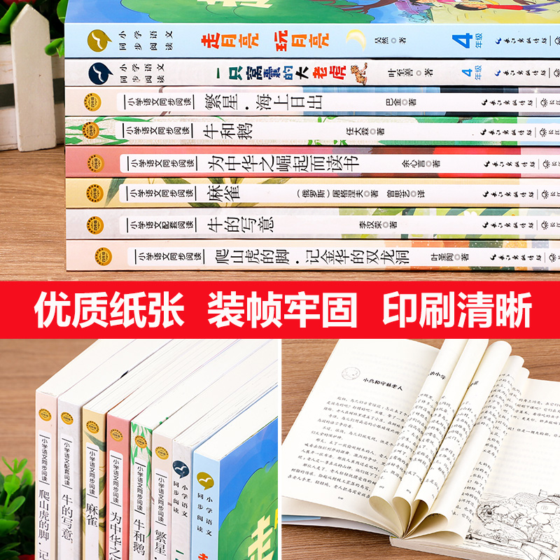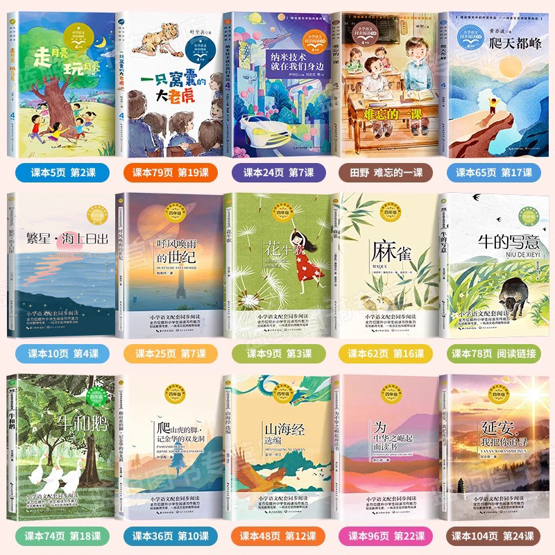 人教版 一课老师推荐 语文教材配套阅读书籍 作家作品全套4册麻雀爬天都峰为中华之崛起而读书难忘 四年级阅读课外书必读课本中
