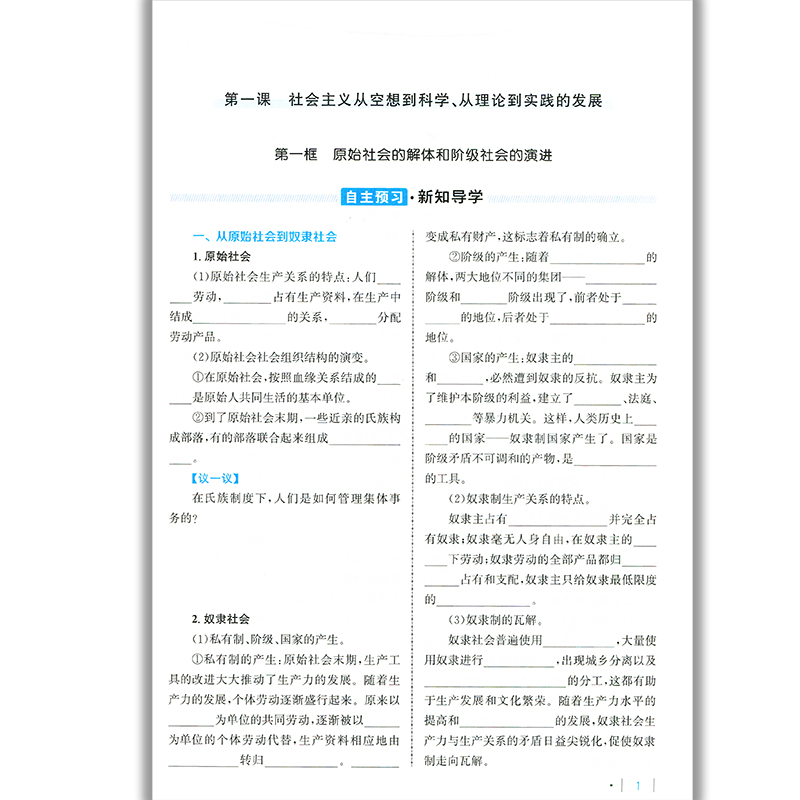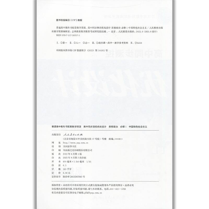 2025人教版 政治必修1同步测控教辅资料书 高中同步测控优化设计思想政治必修1一中国特色社会主义课堂练习普通高中教科书配套人教版