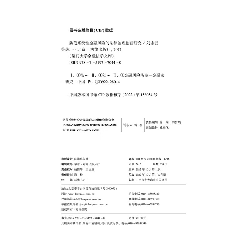 刘志云等著 法律治理创新研究 金融法学 法律出版 9787519770440 2022新书 社 防范系统性金融风险