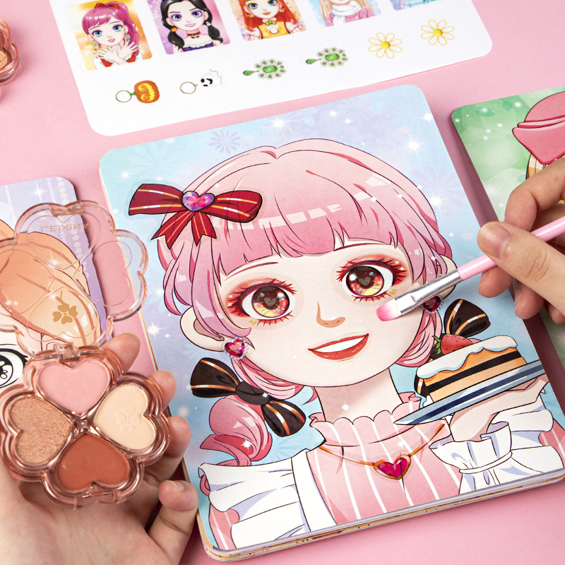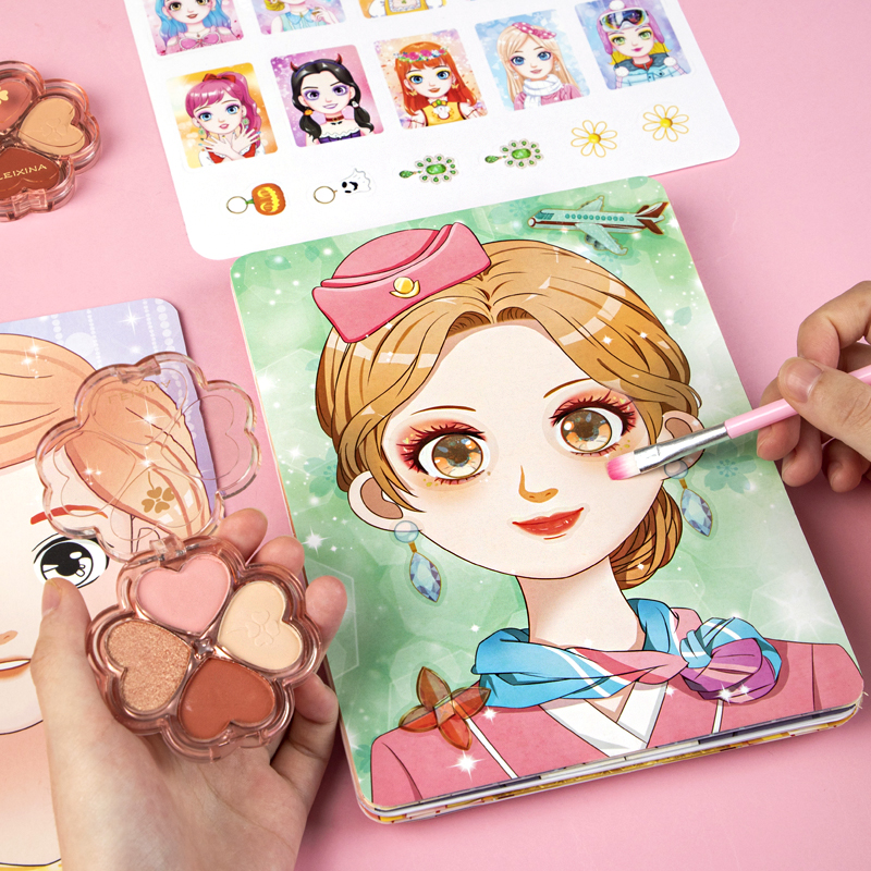 魔法化妆书公主换装 6岁8益智玩具手工涂色贴画 化妆贴贴纸女孩子3