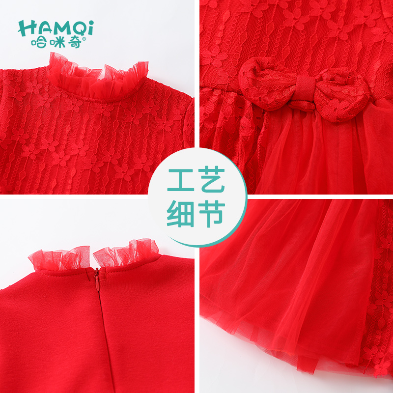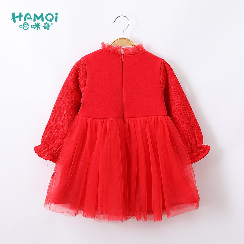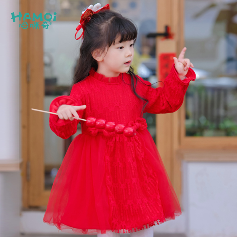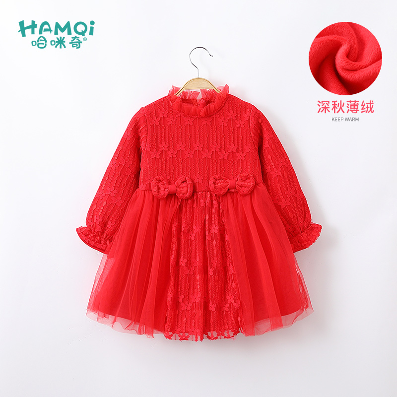 女童连衣裙秋冬装 儿童公主裙小童红色裙子婴儿宝宝洋气新年拜年服