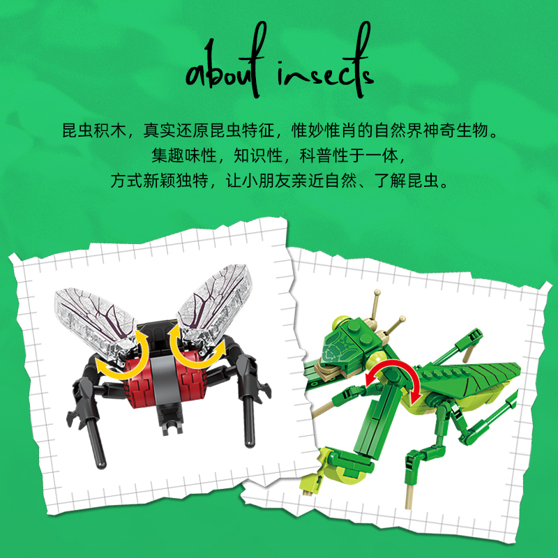 昆虫积木儿童益智拼装 模型玩具立体动物螳螂拼图小颗粒男孩