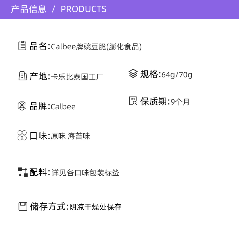 卡乐比豌豆脆豌豆条calbee蔬菜条膨化零食品小吃泰国进口 自营