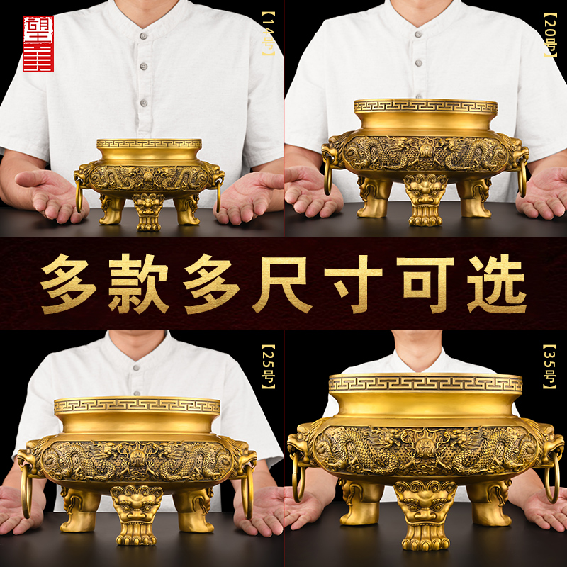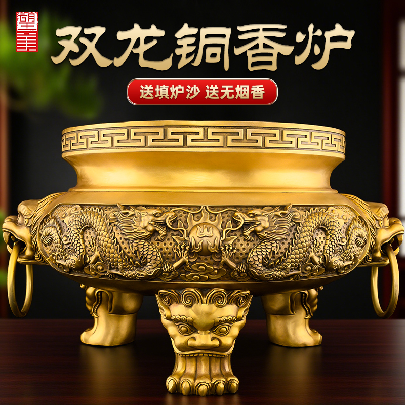 铜香炉黄铜家用室内上香供奉供佛财神爷双龙三足香炉大口径大号