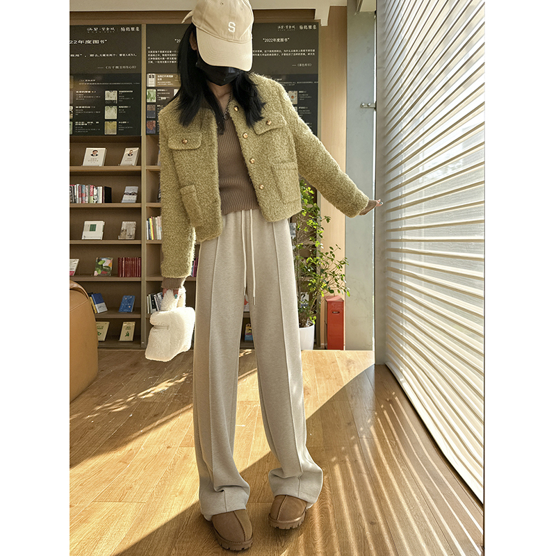 高级宽松bf慵懒垂感直筒加绒休闲阔腿裤 2025新款 子女春秋季 糯米裤