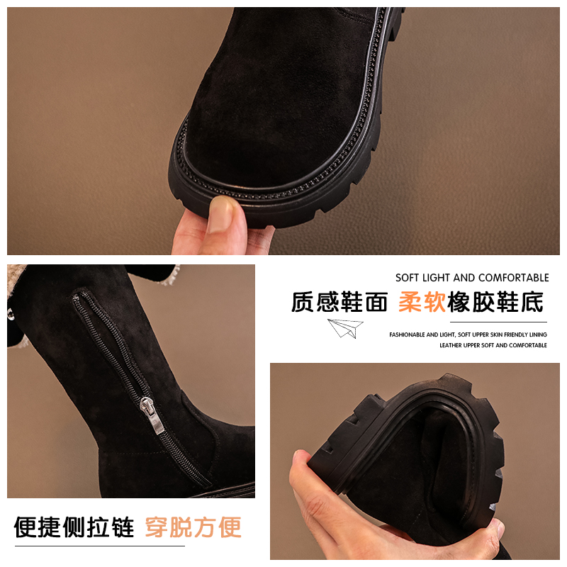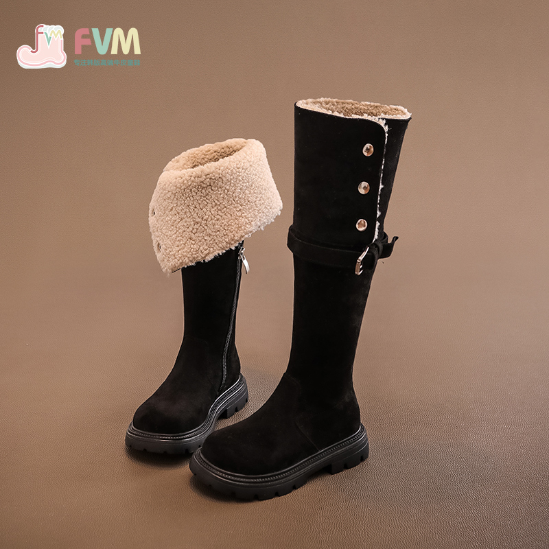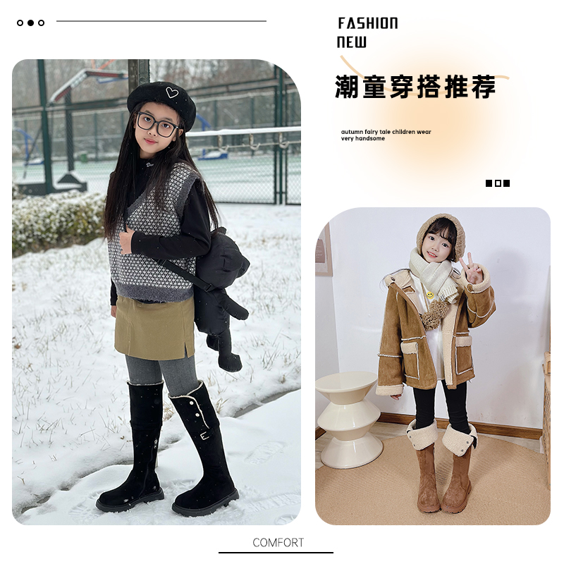 长筒高筒加绒雪地皮靴棕色美拉德 秋冬季 女童鞋 儿童长靴子2025新款