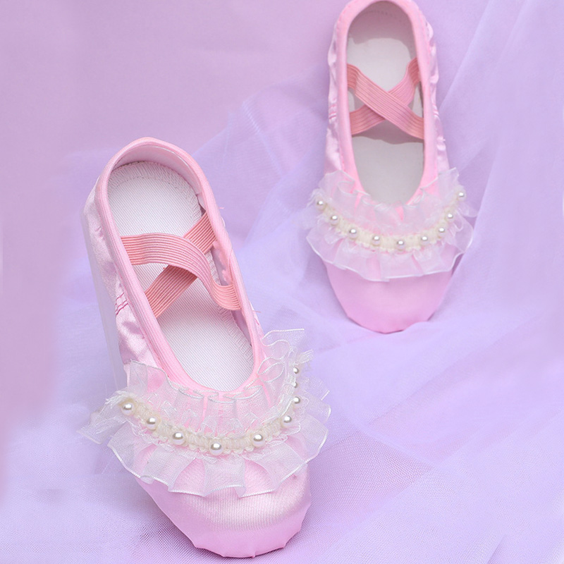 儿童舞蹈鞋 蕾丝珍珠女孩芭蕾跳舞形体训练舞台演出可爱公主风韩版