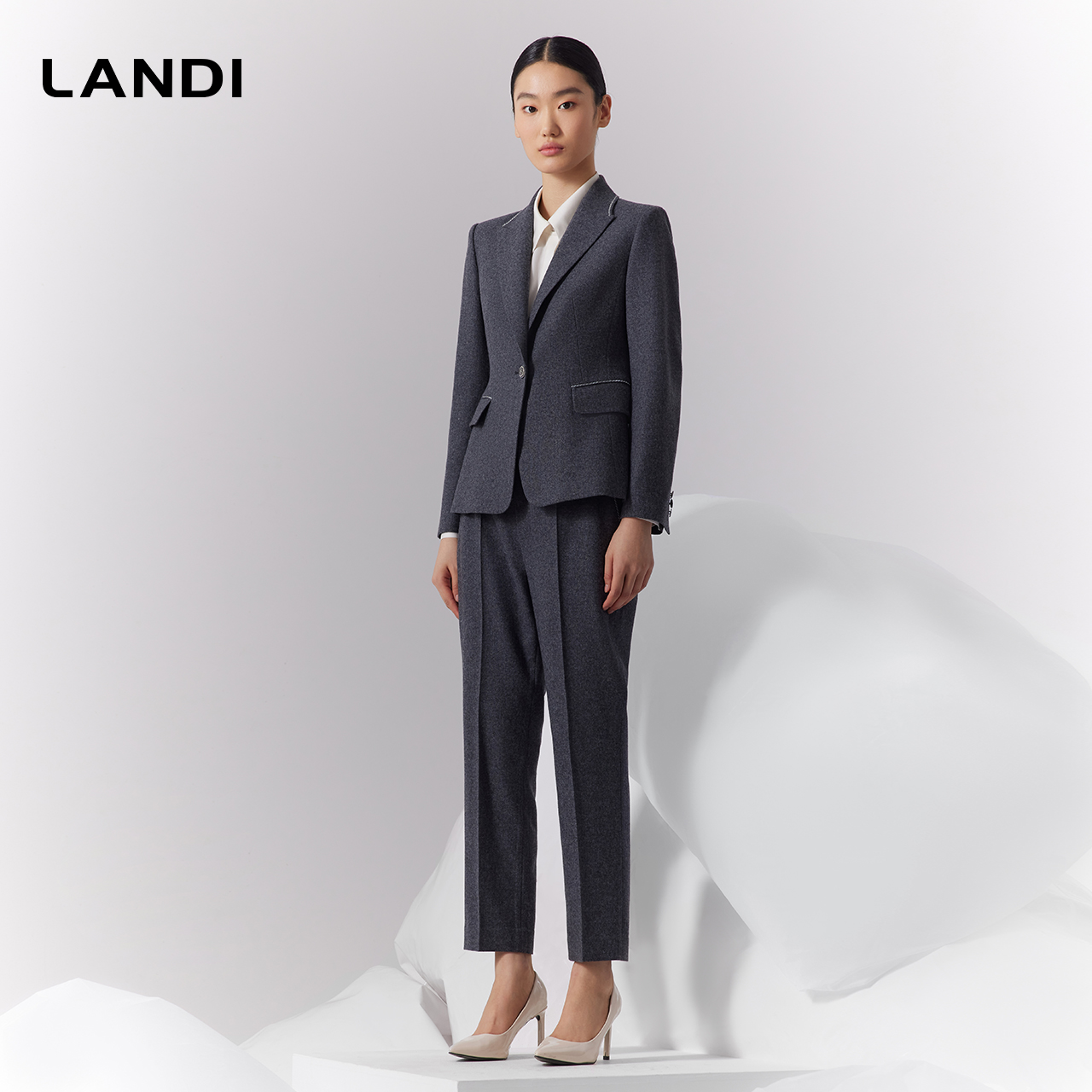 裤 垂感拼接腰头阔腿灰西装 L2C5KZ125 商场同款 indicia标记25秋新款