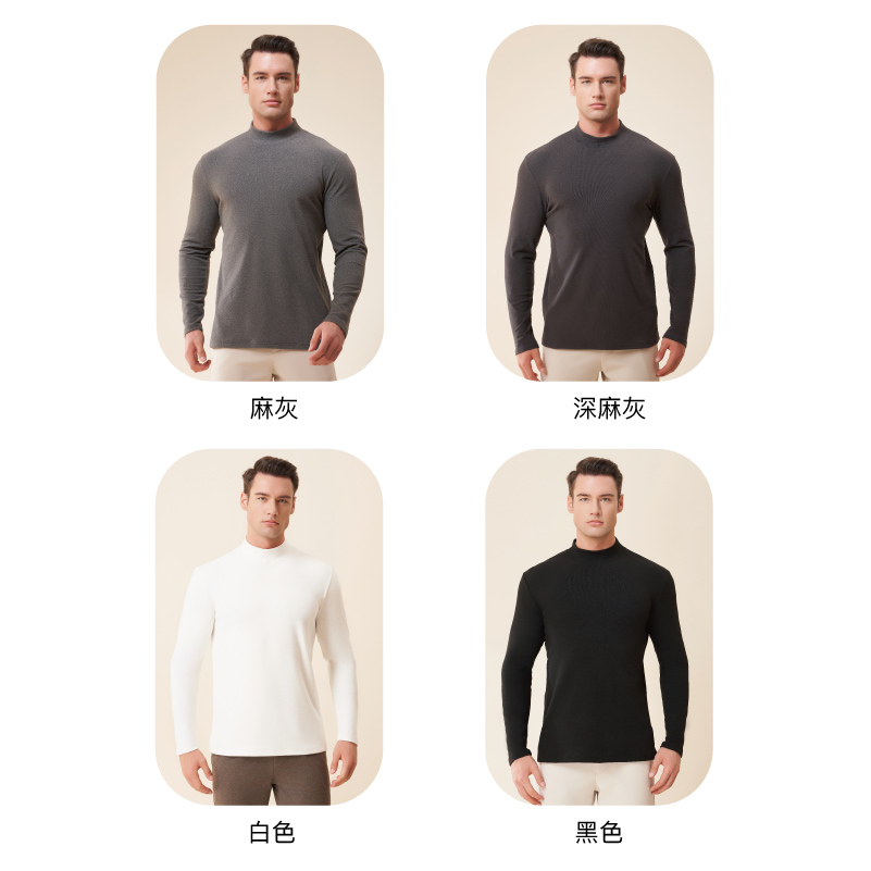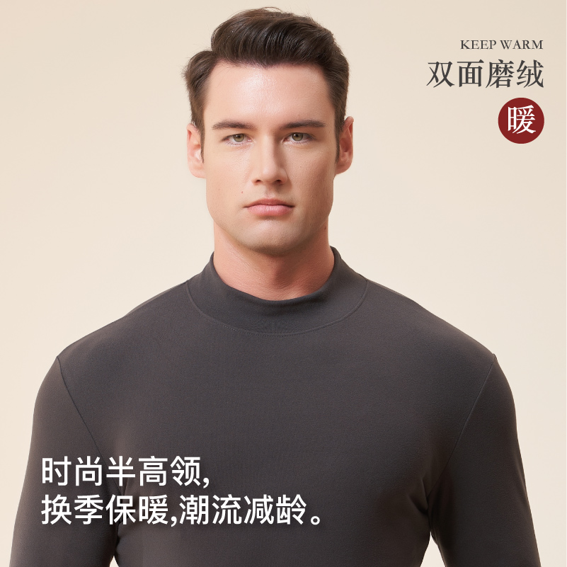 加绒上衣双面磨绒德单件秋衣无痕秋冬季 半高领保暖内衣男款 打底衫