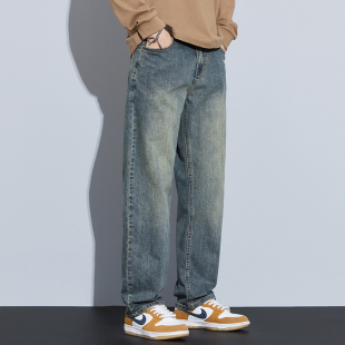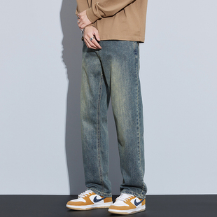 宽松直筒水洗做旧vibe裤 Kuvine秋季 男款 高街cleanfit牛仔裤 子 美式