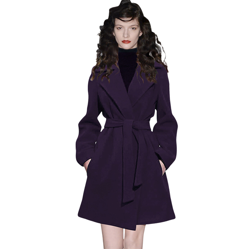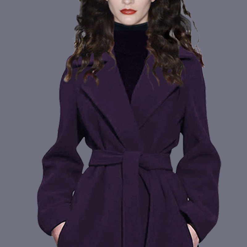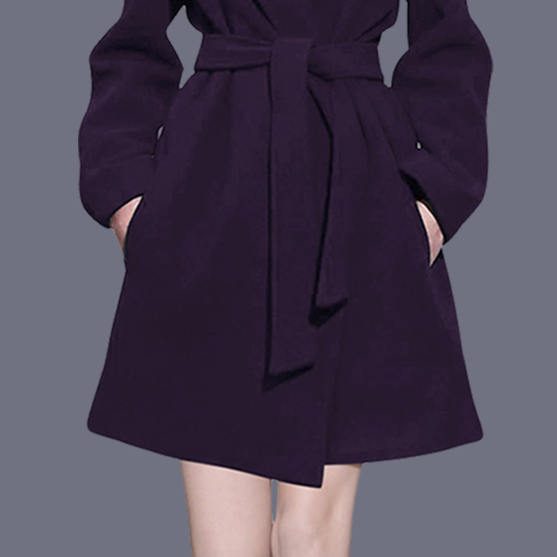女装 加大码 秋冬赫本风连帽厚绵羊绒毛呢外套 韩版 呢子大衣女中长款