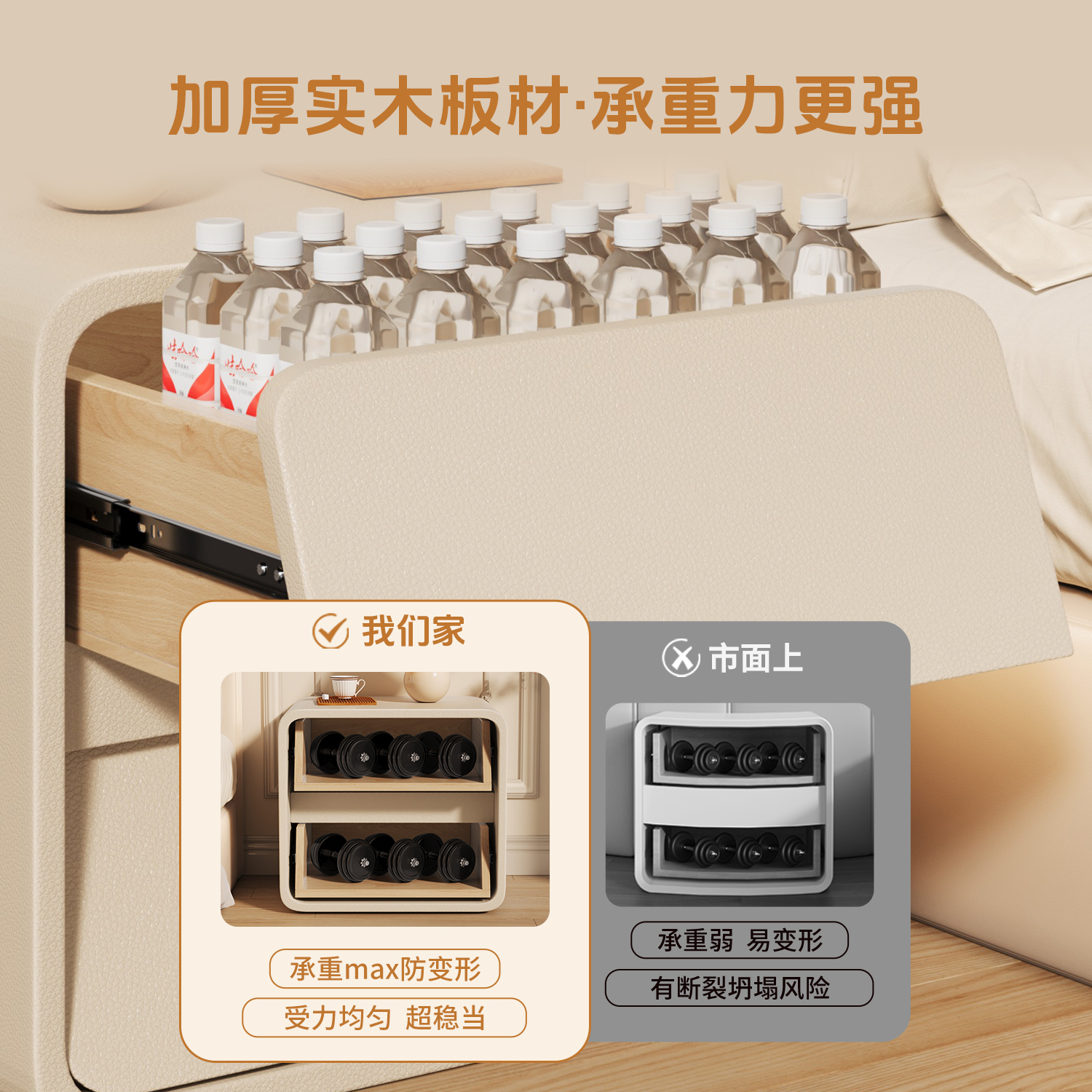 实木床头柜2025新款 简约现代小型轻奢高级感奶油风卧室家用床边柜