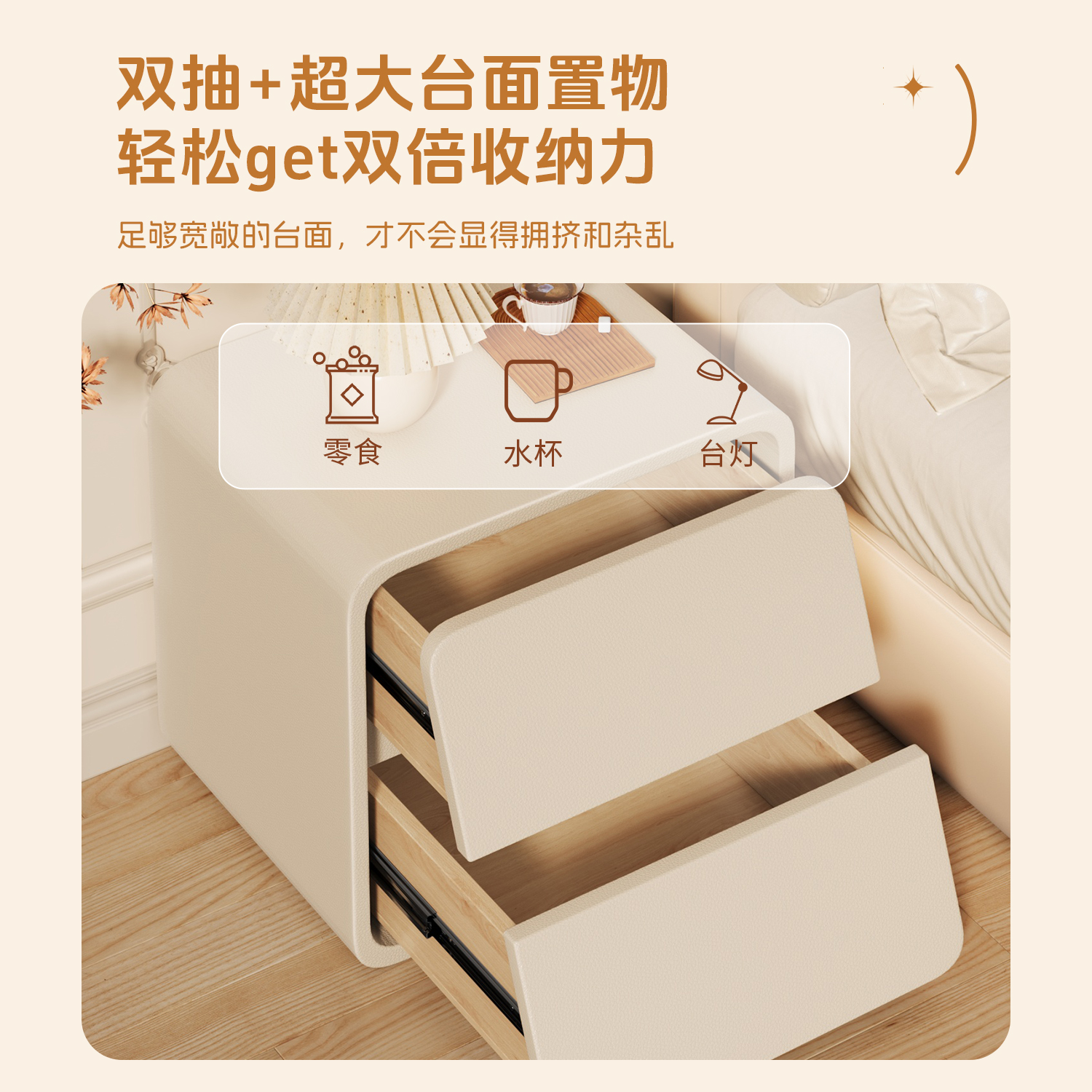 奶油风床头柜现代简约小型床边柜儿童卧室床头置物架收纳储物柜子