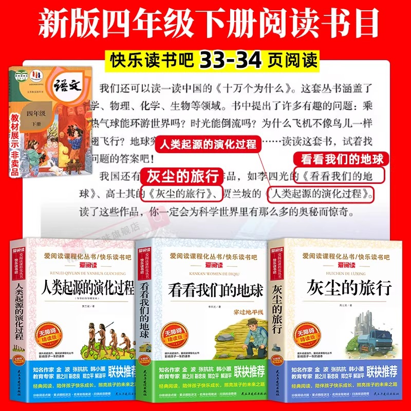 地球李四光人类起源 全套3册 快乐读书吧四下书籍看看我们 旅行高士其四年级下册阅读课外书必读正版 演化过程4下寒假书目 灰尘