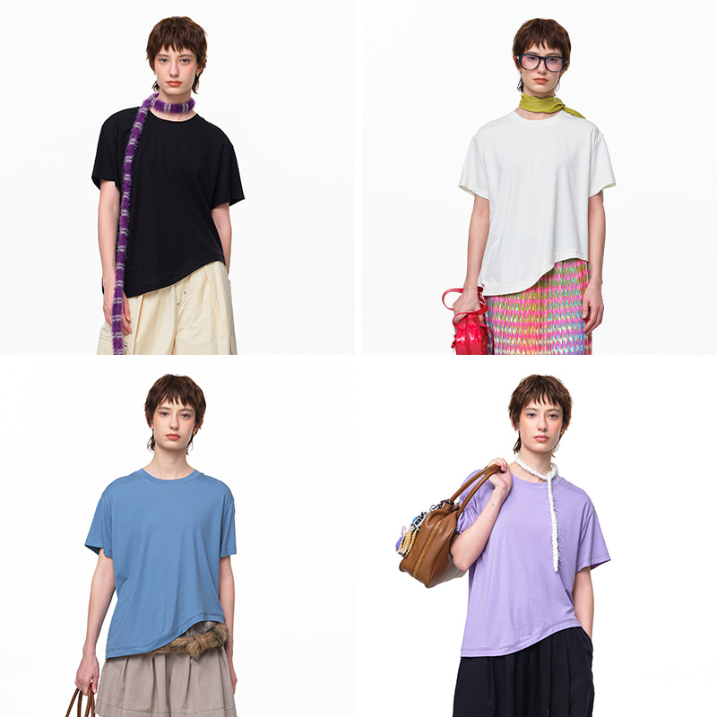 t恤女短袖 纯色U领不规则下摆宽松休闲短款 新款 MOVEUP幻走2025夏季