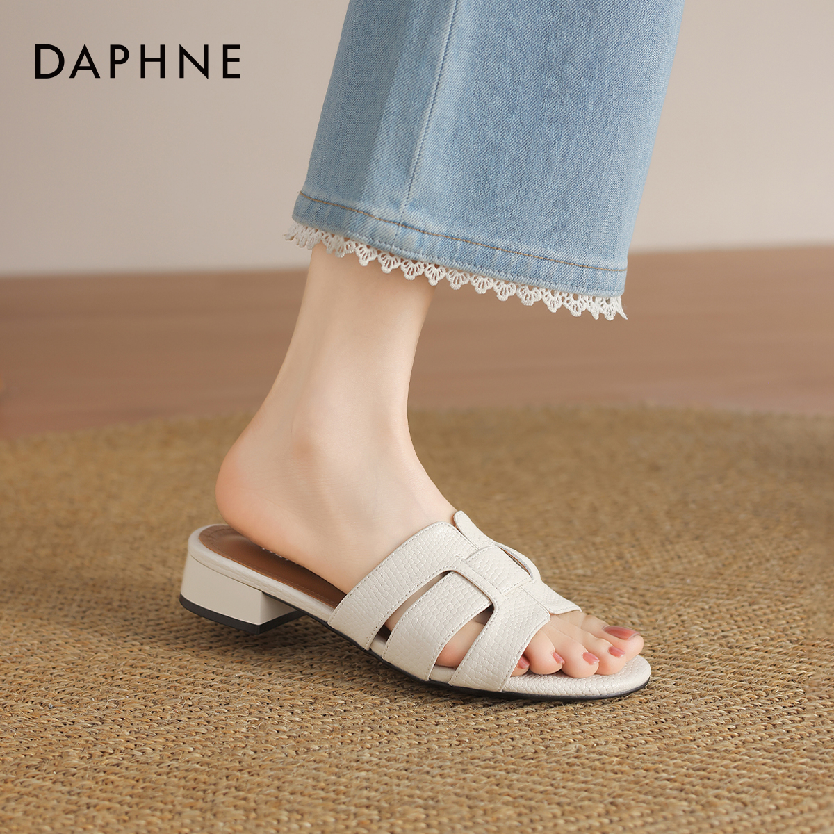休闲粗跟低跟一字凉拖鞋 罗马凉鞋 女士 女夏2025新款 达芙妮外穿拖鞋