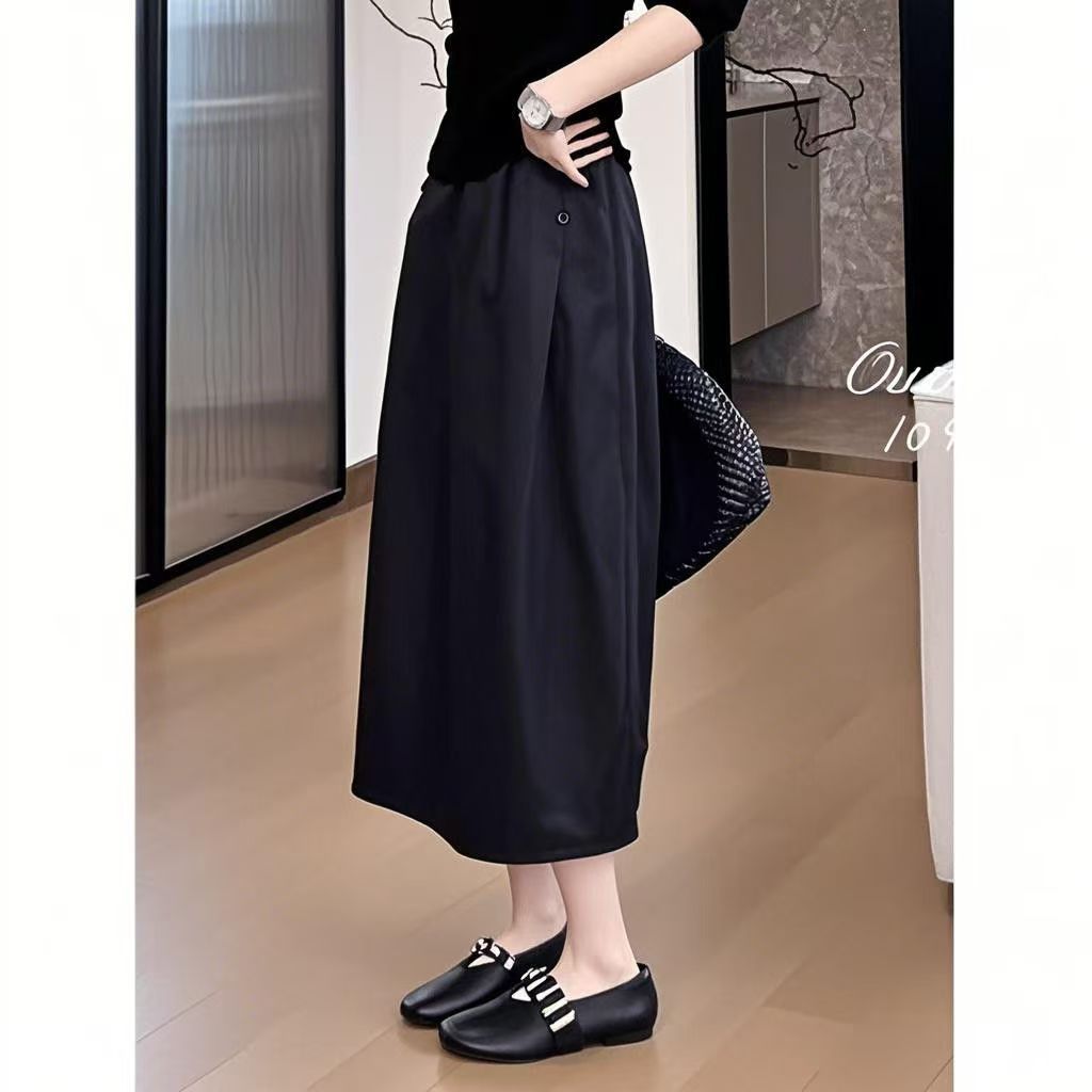 大码 夏季 胖mm高腰显瘦遮肚开叉a字长裙 半身裙女2024新款 黑色西装
