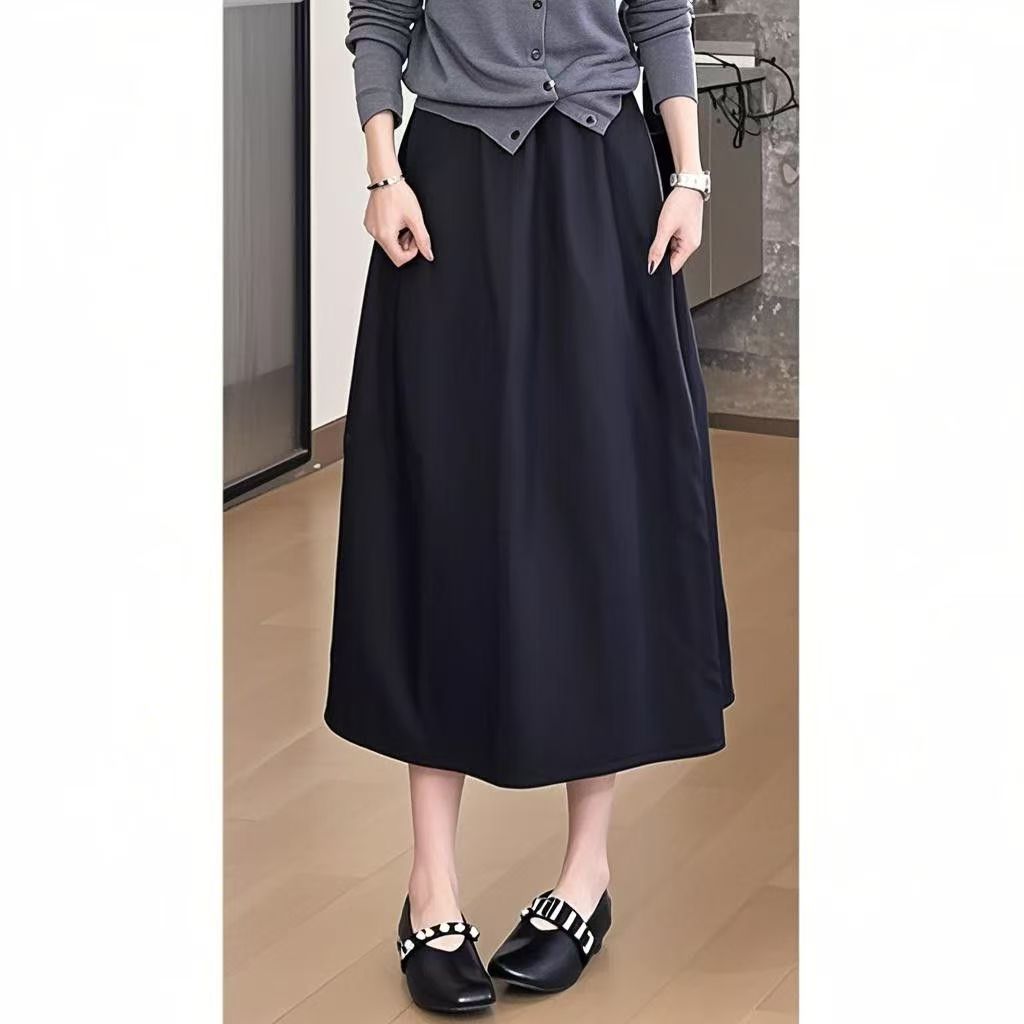 黑色高腰抗皱速干伞裙女夏2025春秋新款 小个子休闲百搭纯色半身裙