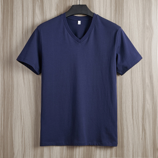 港风新款 上衣服打底衫 男士 t恤V领宽松白鸡心领打底衫 体恤 短袖 夏季