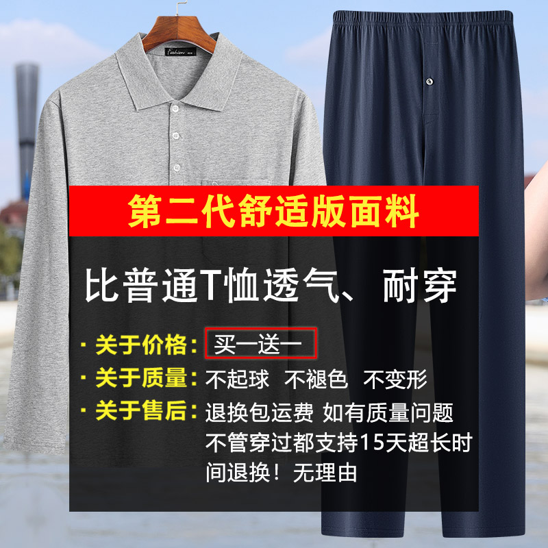 长裤 申本薄款 宽松大码 T恤套装 中年爸爸休闲风 中老年翻领纯棉长袖