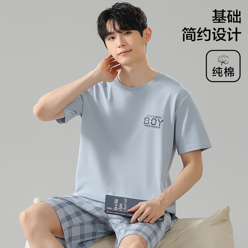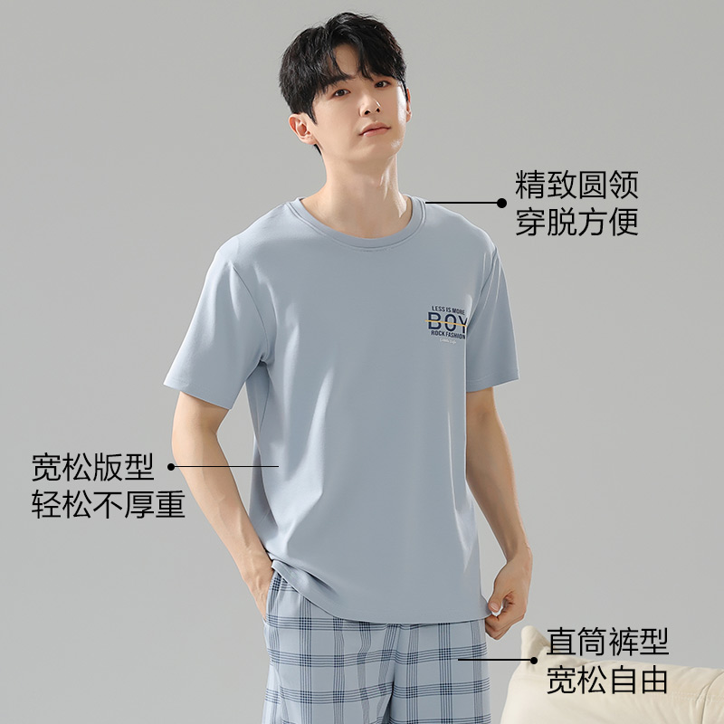 睡衣男款 宽松全棉家居服套装 短袖 可外穿透气大码 裤 南极人纯棉男士