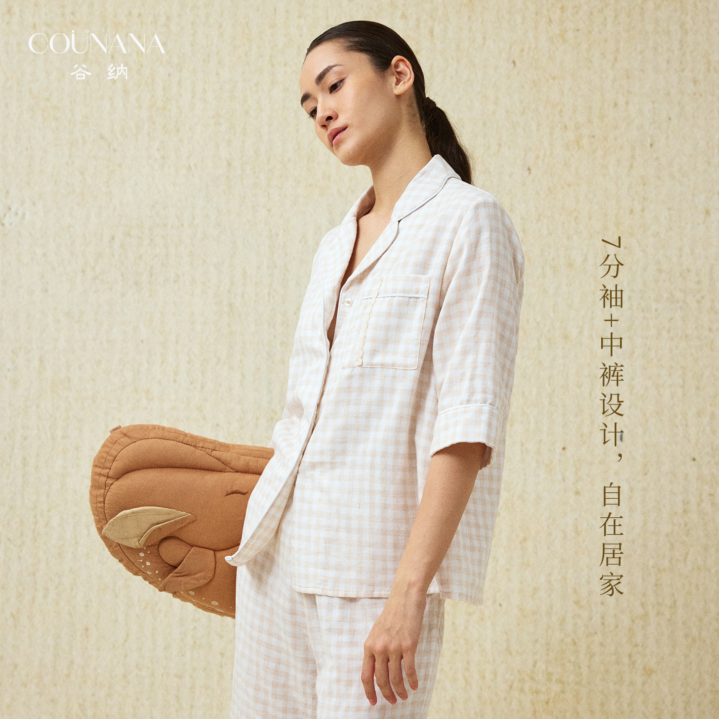 睡衣女春秋季 可外穿大码 柔软棉长袖 套装 家居服 格子长裤 迪士尼新款